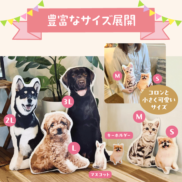 コロンとした手のひらサイズから、大型の子にぴったりな2L・3Lサイズまで、ペットちゃんの大きさに合わせて選べます。
