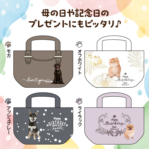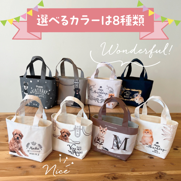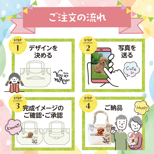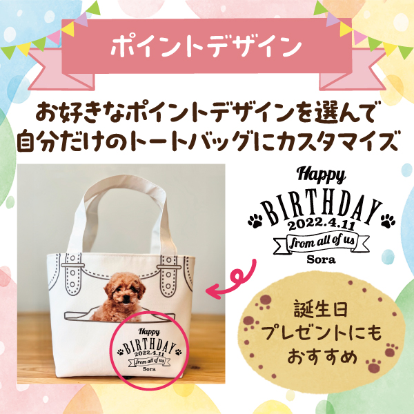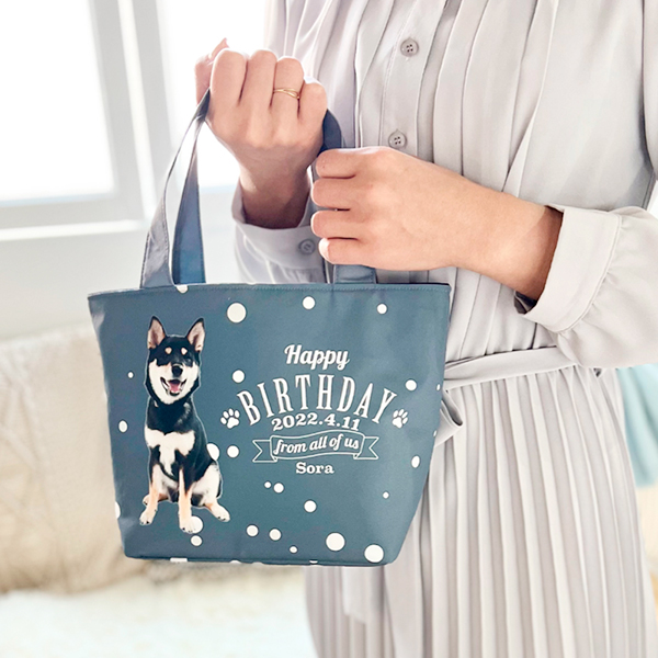 スマホで撮った、お気に入りの写真でトートバッグを作ってみませんか?名入れ、記念日などの日付印刷にも対応しています。