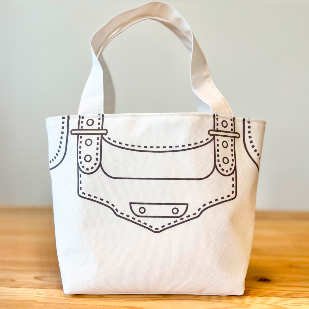| サイズと仕様 | 横(底面)20cm×高さ20cm×マチ10cm 持ち手30cm |